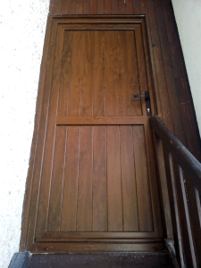 Pose d’une porte pleine en bois par les menuisiers Solabaie Alp’Fermetures dans le 73.
