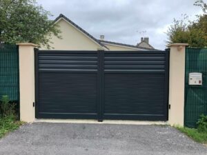 Installation d’un portail battant motorisé en aluminium RAL7016