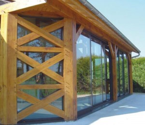 Les baies coulissantes en Aluminium s’intègrent parfaitement dans la structure en chêne permettant d’allier à la fois le confort et l’esthétisme.