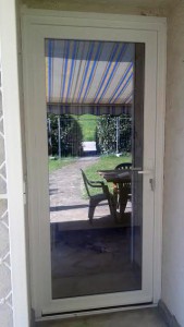 Porte d’entrée en PVC blanc, avec grand vitrage. Posée par Solabaie Alp’Fermetures à Frontenex.