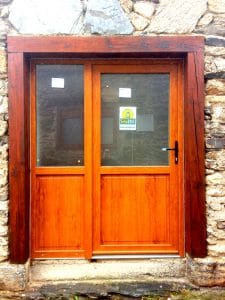Rénovation par Solabaie DDI, pose de deux portes sur-mesure en PVC Solabaie bicolore : Chêne doré : extérieur Blanc : intérieur Le PVC est un excellent matériau pour son pouvoir isolant et sa facilité d’entretien. Et disponible en couleur chez Solabaie.