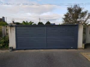 Pour des clients situés à Plouguerneau nous avons réalisé le remplacement d’un portail coulissant motorisé en bois par un portail aluminium motorisation somfy, gamme tendance, modèle Anémone, coloris ral 7015 gris ardoise. Programmation sur la télécommande de l’ouverture portillon. Ce client possède l’application Tahoma pour la gestion de ses volets roulants, on lui a rajouté l’icône du portail sur celle-ci, il peut donc ouvrir celui-ci via son application sur son téléphone également, ouverture du portail entièrement ou portillon comme avec la télécommande.