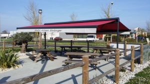 Agencer votre terrasse pour que vos clients se restaurent à l’ombre quand le soleil est là. Solabaie Rochefort vous propose ce store banne bi pans motorisé de 6 mètres de large et 3 mètres de retombée de chaque cotés. La toile est en SOLTIS 92, toile très résistante et lavable. La structure est en aluminium gris RAL 7016.Donc aucun risque de rouille ou oxydation. La barre centrale et les bras sont équipés de LEDS. Vos clients ne resteront pas dans le noir. Nous proposons d’autre solutions: Store banne de terrasse, pergola, parasol. Venez nous rencontrer pour aborder ensemble votre projet. […]